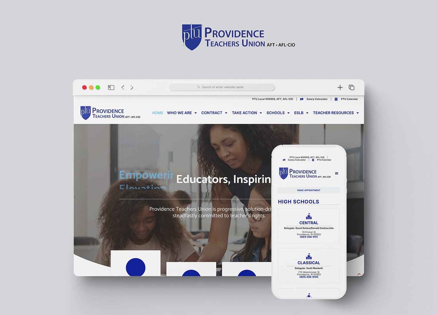 Black Door Creative designed and developed a comprehensive WordPress website for the Providence Teachers Union, featuring a custom-built search application that allows members to easily find calculators, articles, events, and union resources across the entire site. Our website design prioritizes user experience and accessibility, ensuring educators can quickly access critical information and tools. Beyond the initial website development, we provide ongoing website maintenance to keep the platform secure, up-to-date, and functioning smoothly for PTU’s growing membership. The custom application development integrated seamlessly within WordPress delivers powerful search functionality while maintaining the site’s professional appearance and organizational mission.